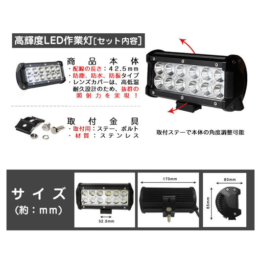 LEDライト LED作業灯 LEDワークライト 36W BAR型 作業灯 ハイパワー 広角 1個