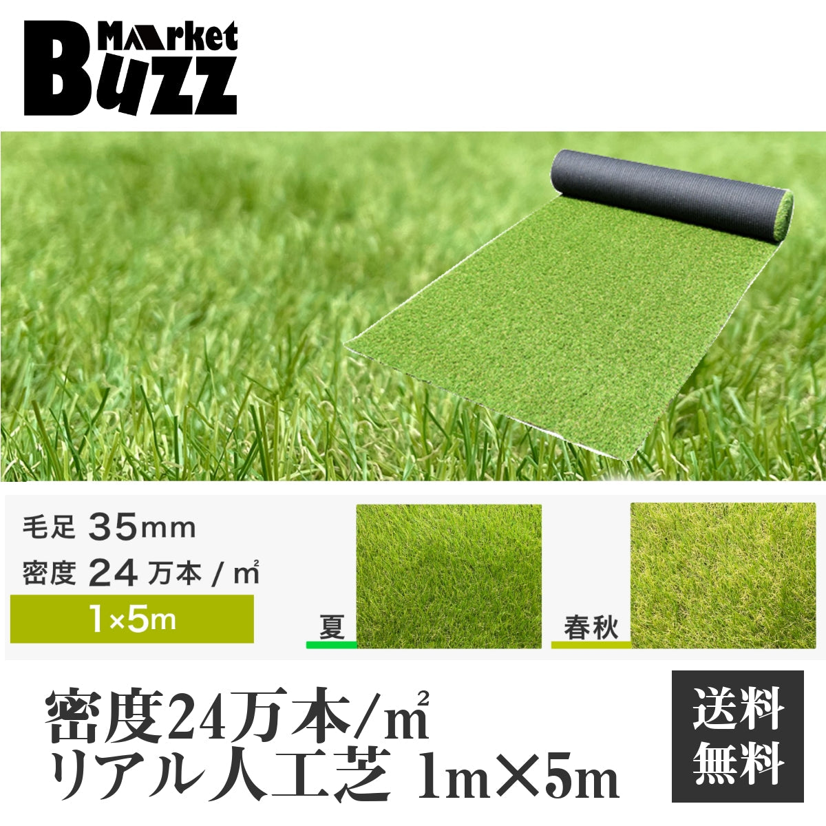 人工芝 ロール 1m×5m 芝丈35mm 24万本/1平方メートル 高耐久 リアル人工芝 芝ロール 芝マット 庭 ベランダ テラス 屋上 ガーデ ン フェイク芝生