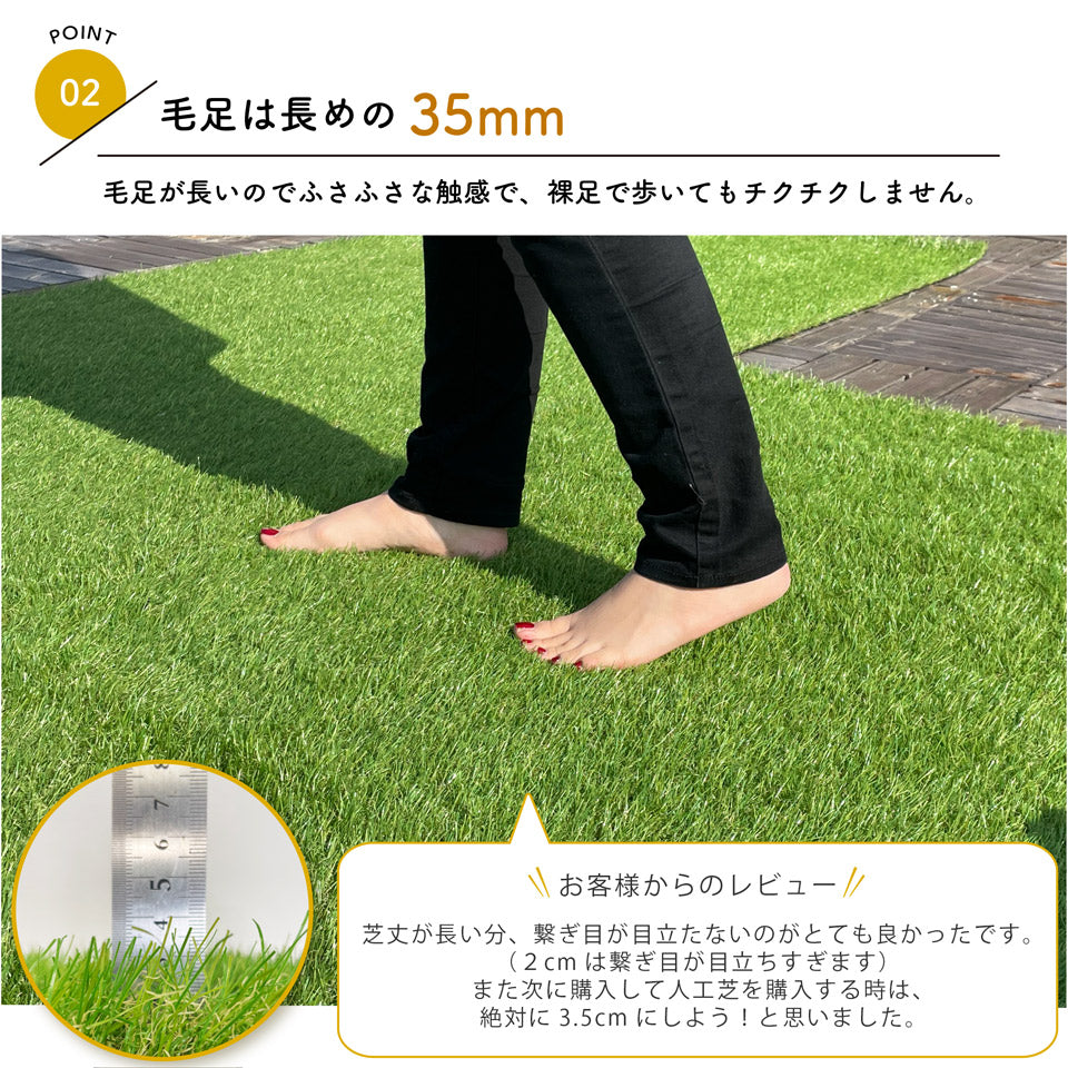 ・継ぎ目が目立ちにくく、まるで天然芝にみえる色合いと質感。