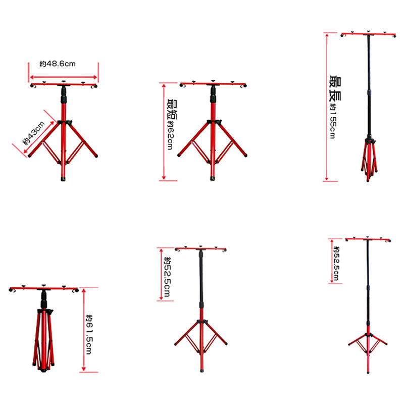 最大搭載台数:LED投光器3台まで 最短高さ:約62cm 最長高さ:約155cm 耐荷重:5kg |