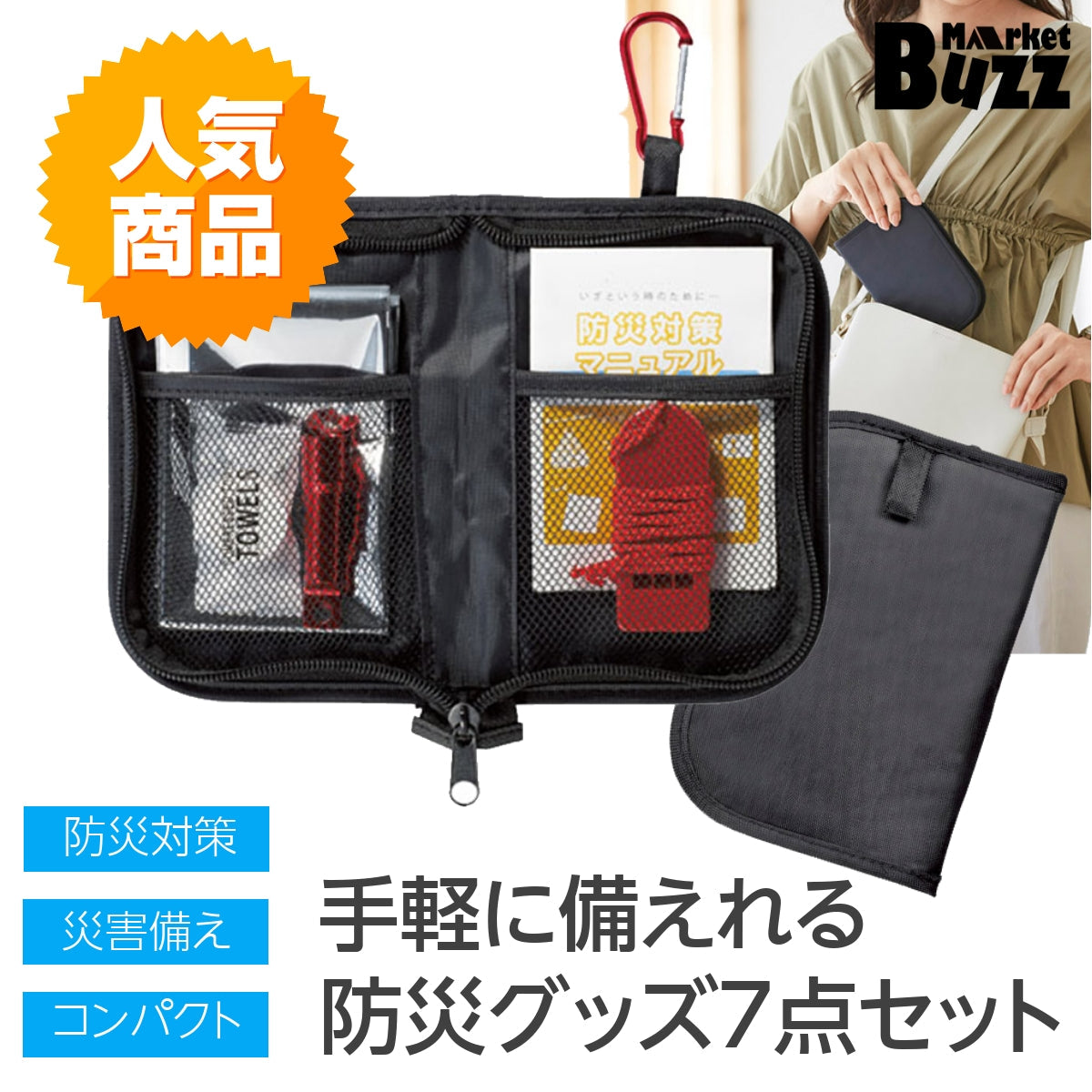防災対策 7点セット 防災グッズ 防災用品 緊急防災用 非常時 ポ ーチ入 携帯 アウトドア ホイッ スル LEDライト アルミ防寒シー ト 圧縮タオル 景品 ギフト