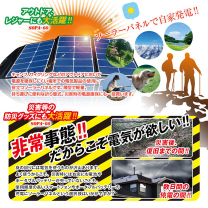 ソーラーパネル 60W 太陽光発電 ソーラーチャージャー 折り畳み 充電 2USB出力 DC出力 防災グッ ズ 停電対策 車中泊 アウトドア キャンプ