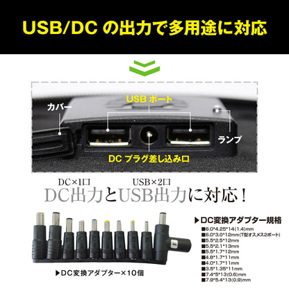 | ・ソーラーパネル本体×1 ・DC充電ケーブル×1 ・DC変換アダプター×10 ・取扱説明書(日本語)×1 |