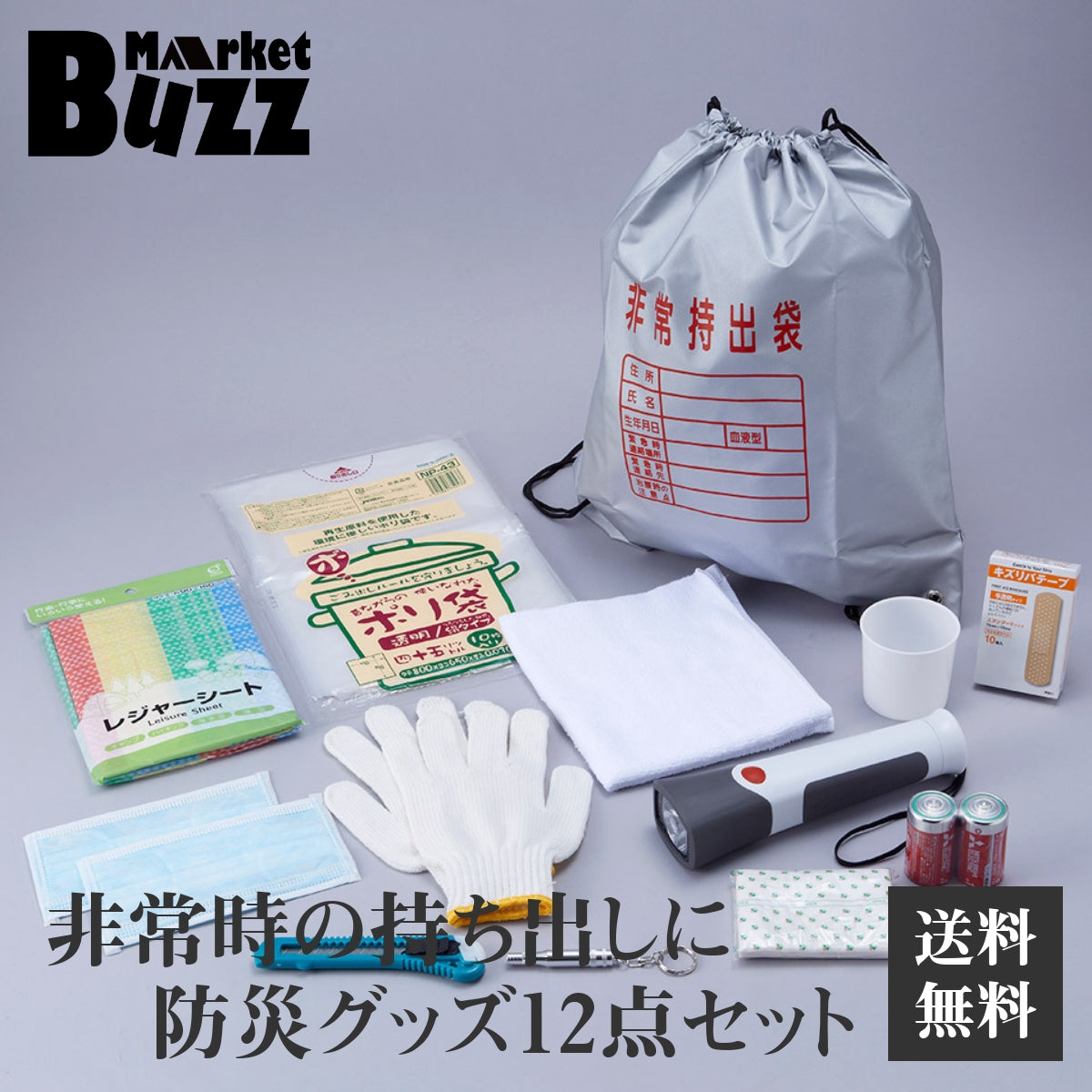 | ・非常持出袋 ・単1形LED防雨ライト(点灯確認用電池付) ・アルミホイッスル ・コップ ・カッター ・ポケットティッシュ ・レジャーシート ・タオル ・軍手 ・マスク×2 ・ゴミ袋 ・絆創膏 ※レジャーシート・ゴミ袋・救急絆創膏・カッター・ティッシュについては予告無くパッケージ・仕様等を変更する場合がございます。 |