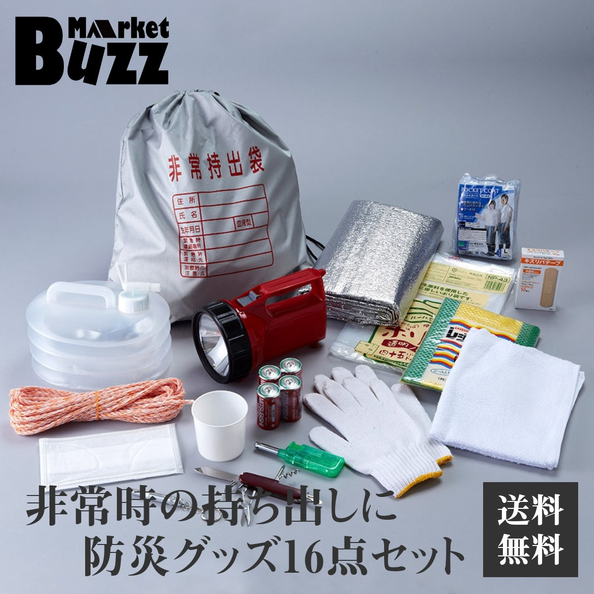 避難時に必要な品物をコンパクトにまとめた防災グッズ厳選16点セットです。 |