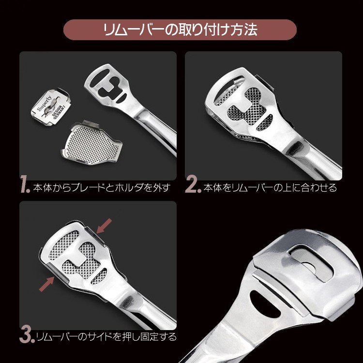 かかと 角質けずり 角質リムーバー ステンレス製 角質除去 角質ケア やすり フットファイル たこ 魚の目 角質硬化 替刃10枚付き