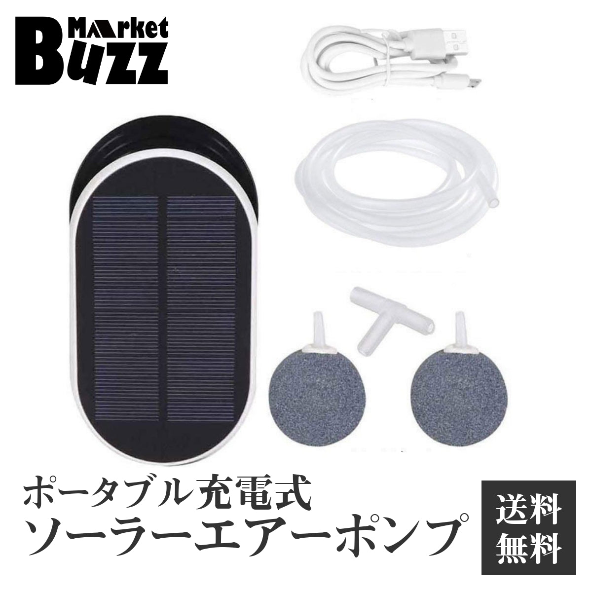 ソーラー充電 エアポンプ ポータブル式 USB充電 2WAY 酸素ポンプ 強 弱 間欠 3モード 約1L/m 停電時緊急酸素 釣り 水槽の酸素に