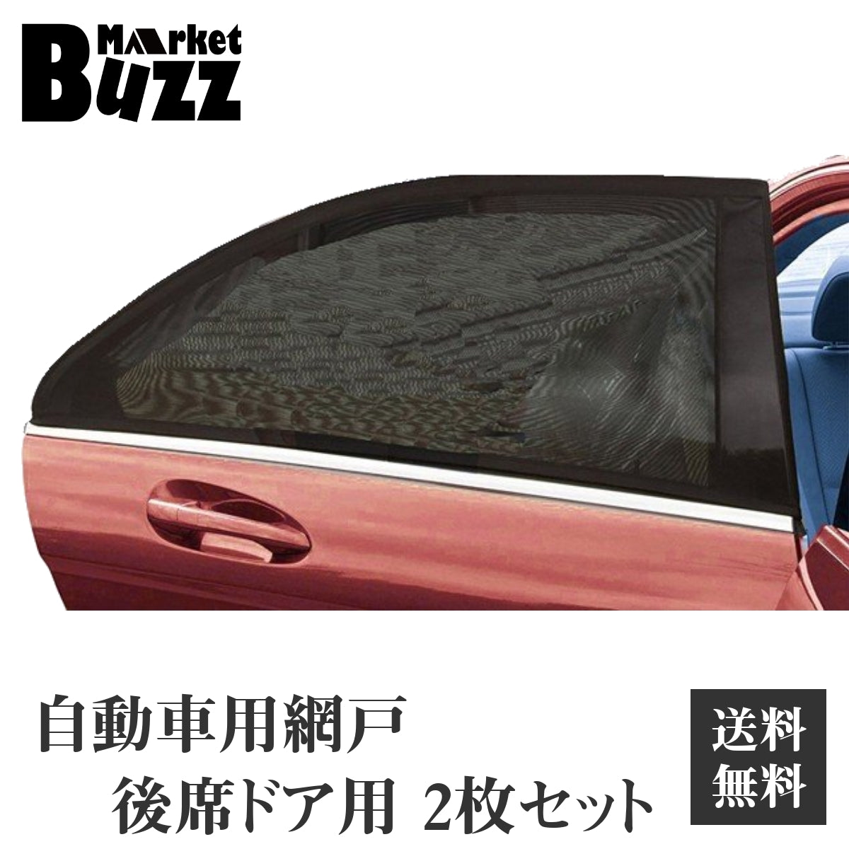 車用 網戸 ウィンドウネット 後部座席用 窓枠にかぶせるだけ 熱中症対策 窓の開閉可能 虫の侵入を防ぐ 日よけ 遮光 車中泊 二枚 セット