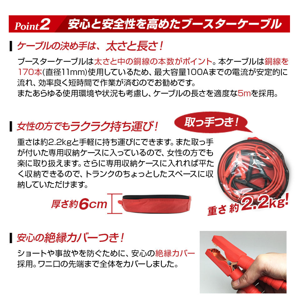 ブースターケーブル 車用 5m 100 A 12V 大型車 普通車 軽自動車 ハイブリッド車 救援 バッテリー 充電 バッテリー上がり 災害