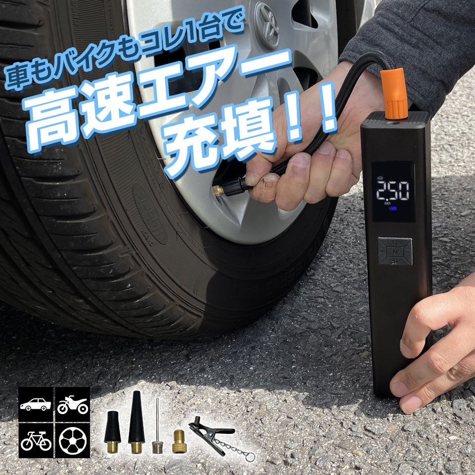 電動 空気入れ エアーコンプレッサー USB充電 シガーケーブル有線 エアポンプ エアコンプレッサ ハンディ 電動エアポンプ タイヤ ボール 自動車 自転車