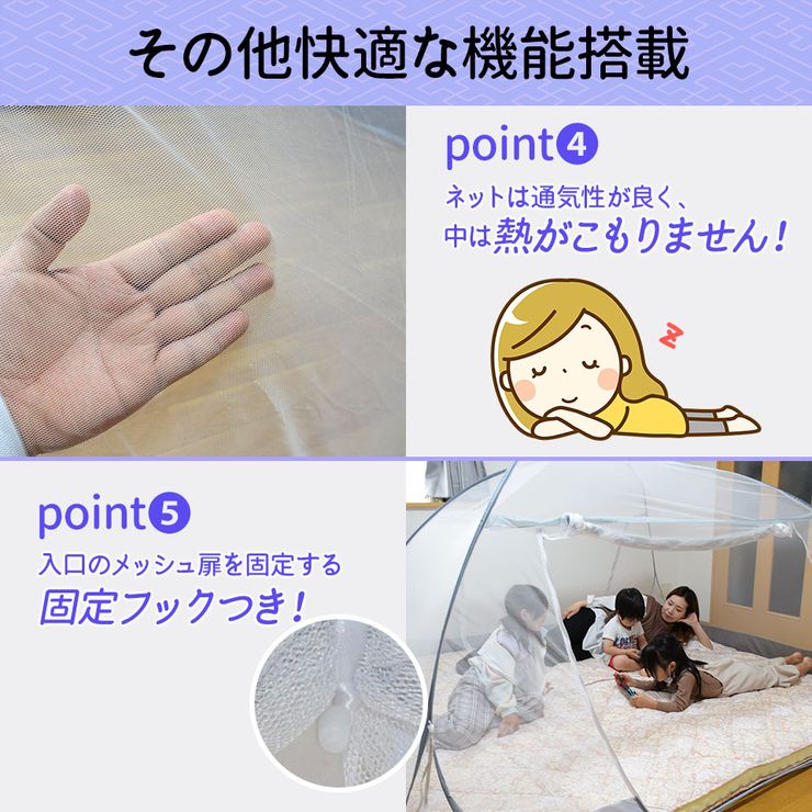 ■手軽で簡単!ワンタッチ構造 ■不安を解消!安心した睡眠 ■シングル敷布団が2枚入るワイドサイズ ■内側にポケット2ヵ所