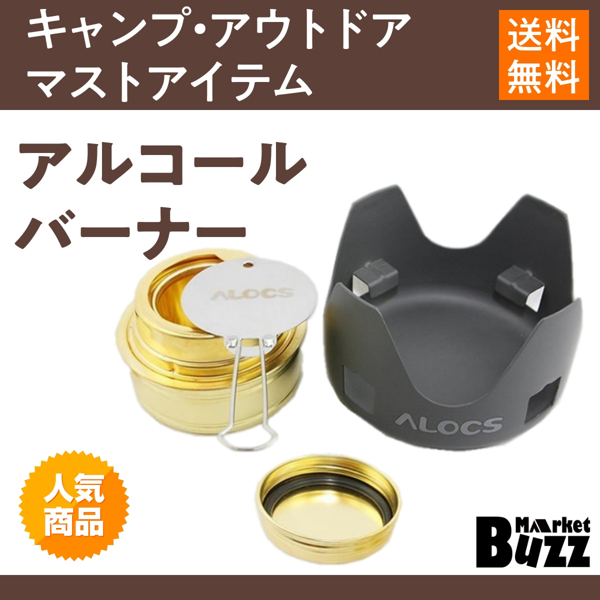 ミニアルコールバーナー 五徳付 き アルコールストーブ コンパク ト アウトドア 登山 キャンプ コ ンロ 銅合金 ゴールド ALOCS