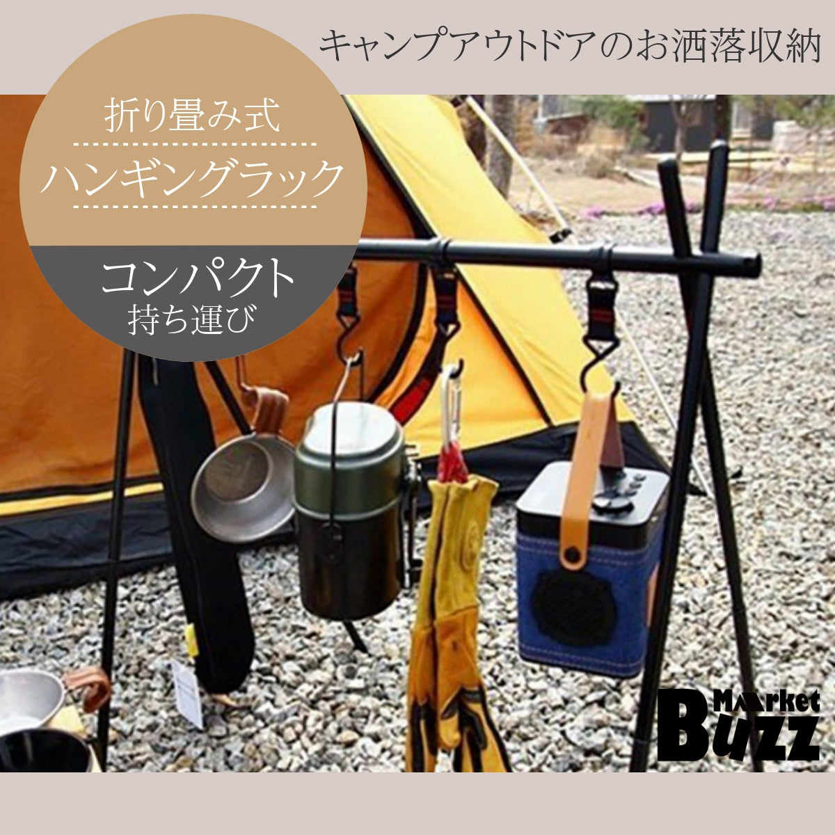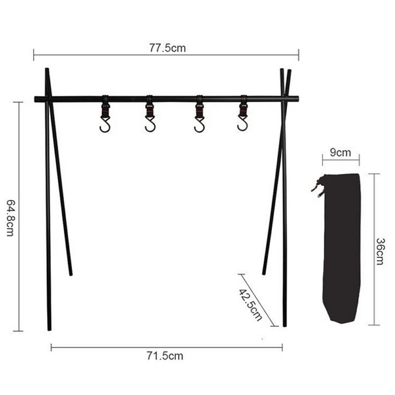 アウトドア用ハンガーラック 軽 量アルミ 組立簡単 携行便利 マ ルチハンガー レジャー キャンプ 海水浴 BBQに 物干し フック5個 収納袋付