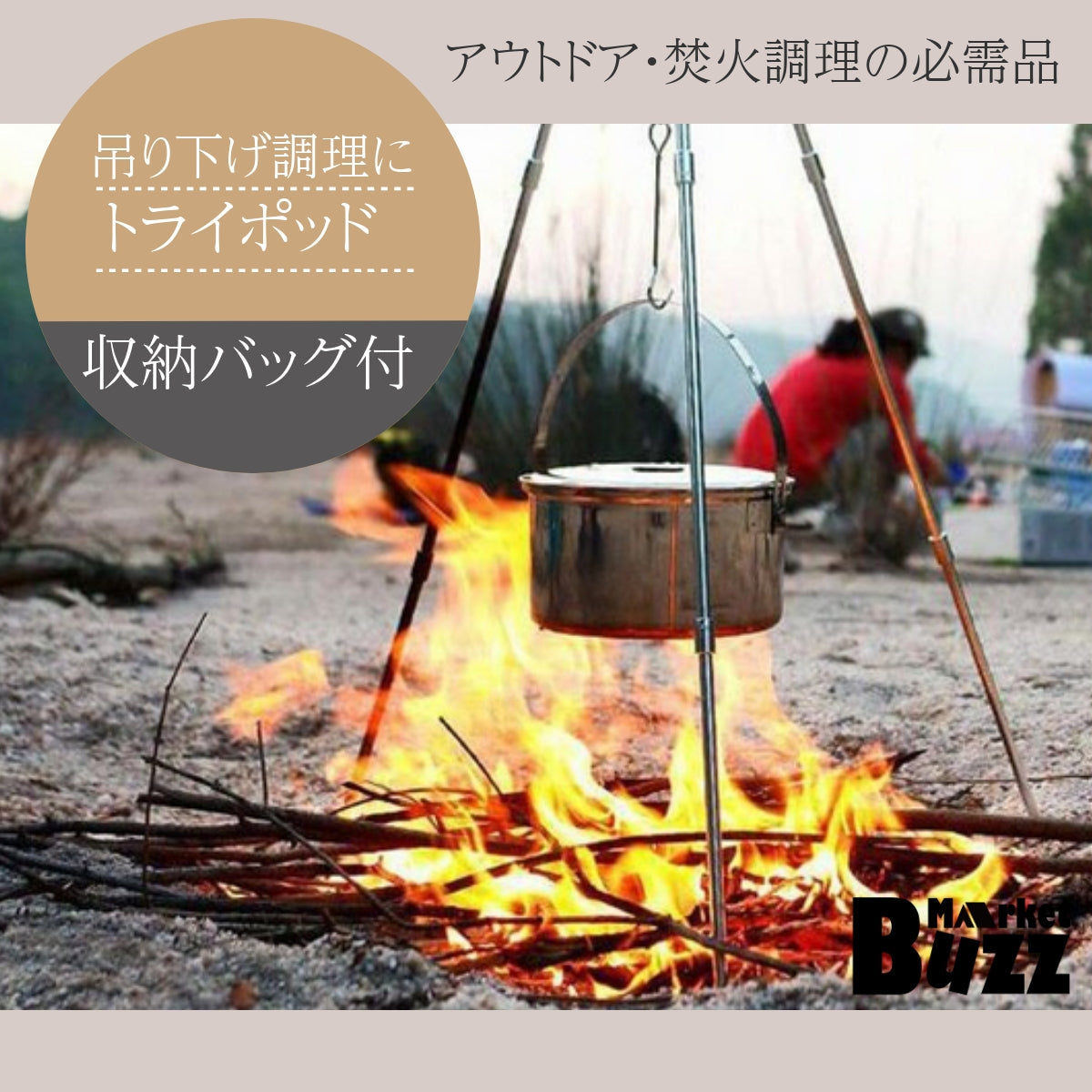 鍋やダッチオーブンなどを吊るすだけでお手軽にキャンプ飯を作る事が出来ます。 |