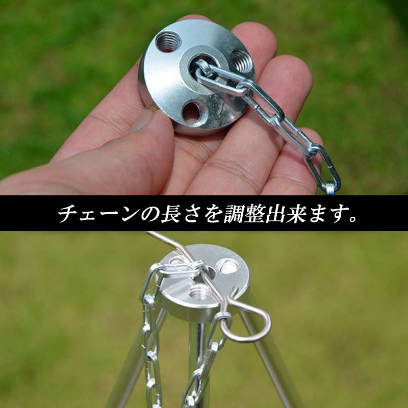 トライポッド 焚き火 三脚 ファイアスタンド 高さ調節可 吊り下げ アルミ合金 収納袋付 キャンプ バーベキュー 防災 アウトドア |