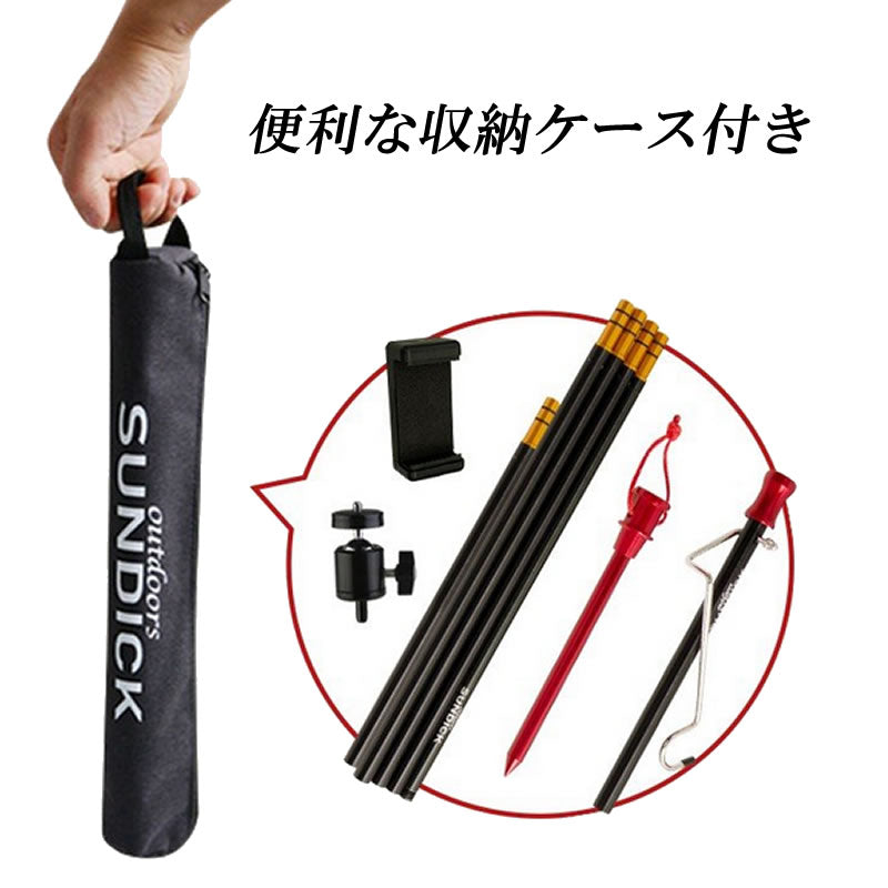 ランタンスタンド ランタンポー ル 高さ調整可 ペグ打込式 カメ ラ スマホホルダセット 軽量アル ミ合金 専用ケース アウトドア キャンプに