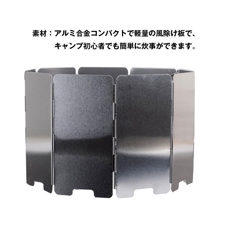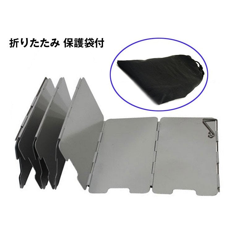 風除板 ウインドスクリーン 風防 防風 アルミ製 キャンプ 登山 折りたたみ 保 護袋付 軽量9枚板 アウトドア