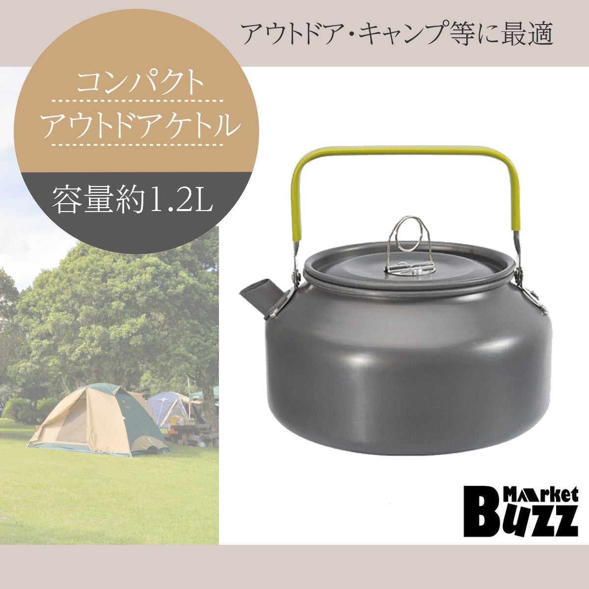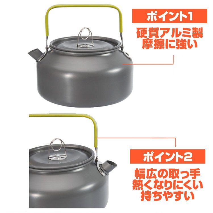 ケトル アウトドア やかん 1.2L キャンピングケトル ポット 軽量 登山 BBQ 硬質アルミ 携帯用 ポ ータブル キャンプ グランピング 収納袋付き