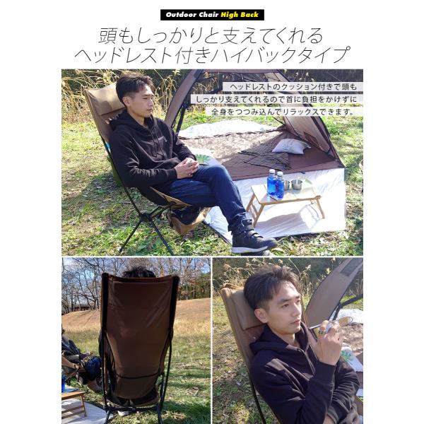 アウトドアチェア ハイバック 軽量 折りたたみ コンパクト 耐荷重120kg キャン プ イス 椅子 釣り BBQ ソロキャンプ 運動会 防災グッズ ガーデニング