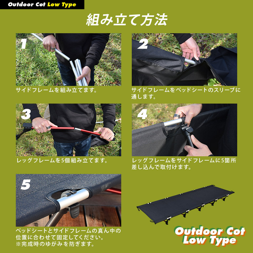 アウトドアコット ロータイプ 軽量 収納コンパクト 耐荷重150kg アウトドア キ ャンプ ベッド アルミ BBQ ソロキャンプ 運動会 防災グッズ