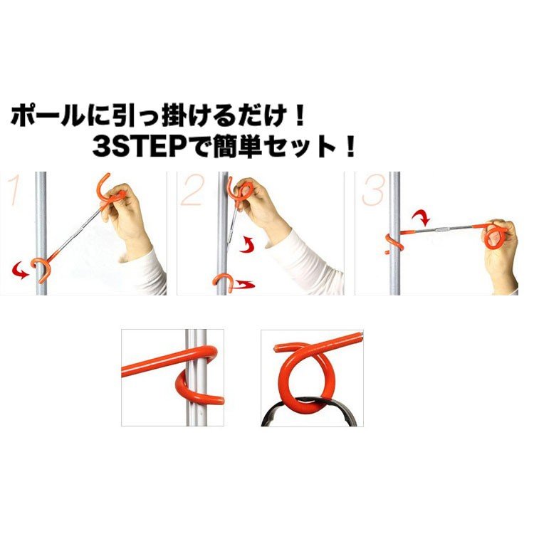 | 長さ:約26cm 取付可能ポール太さ:約22mm?32mm ハンガーの左右で輪のサイズが異なります。 引っかける棒のサイズに合わせてお使いください。 |