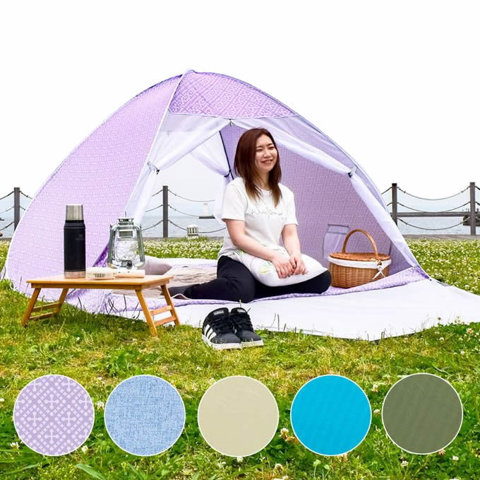 ■前後フルオープン テント前面と後面は同じデザインに統一! 前後とも内側にメッシュスクリーンが施されているので、閉じていても虫除けをしつつ風通しも抜群。 メッシュスクリーンは中央と下のファスナーで簡単に開閉可能です。 前後どちらからでも出入りできる仕様は便利で、圧迫感の少ないデザインです。 ■使いやすさの追求!開閉方法にもこだわりました ファスナーは内側と外側の両方から開閉可能にしました。 外側のスクリーンも、内側のメッシュスクリーンもダブルファスナー使用で内外どちらからも開閉できます。 ■メッシュポケットついてます! テント内の収納に便利なメッシュポケットをテント内に設置。 スマホなどの置き場に利用できます。 ■ランタンなどが設置できる吊り下げループがあります テント内の上部にはランタンを掛けられる吊り下げループ搭載。 夜の灯り設置やミニ扇風機の設置に便利です。 ■最強UVカット 最高水準UPF50+で紫外線対策!サンシェードテントとしても優秀です。 テント生地の裏側にシルバーコーティングを施すことで夏の強い日差しをカットし、熱がこもりやすいテント内の温度上昇を抑えてくれます。 また、より高い遮蔽率で紫外線ブロック!日焼け対策としても便利です。 生地の裏面にシルバーコーティングがない場合と比べ、テント内の温度上昇が大幅に抑えられ、体感温度で-12度は違うと言われています。 そう考えるとテントで涼しく過ごすならシルバーコーティングは必須ともいえますね。 ■好みで選べる5色 人気色をあつめたシンプルテイスト無地タイプのライトベージュ、カーキ、ブルーグリーン。 華やかで可愛い柄タイプのオリエンタルライラック。 可愛さとクールさをかねそなえた柄タイプのブルーデニム。 どれもオシャレで使いやすく、海でも山でも、そして川辺やベランダでも映える5色を用意いたしました。 ■UPFとは?■ 「UV protection factor(紫外線保護指数)」の略で、A波・B波の紫外線に対して、保護の相対的な能力をどの程度持っているかを示す数値です。 UPF50+はその中でも最も高い値を表し、炎天下で長時間肌をさらす場合等、強力な紫外線対策に有効とされています。 |
