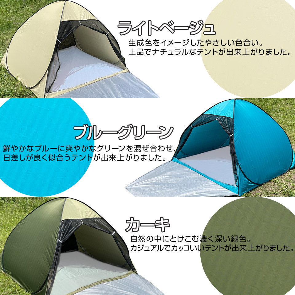 テント ワンタッチテント サンシェード UVカット 日よけ 2人用 軽量 ポップアップテント ドームテント 紫外線 遮熱コート 防水 防塵 アウトドア 海水浴